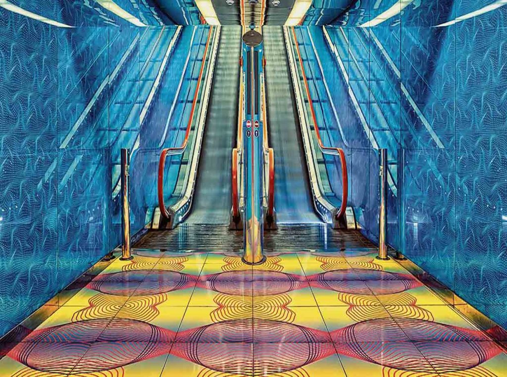 - Università: Pop-art roze en paars, golvende wanden en digitale patronen maken dit station favoriet bij designliefhebbers.